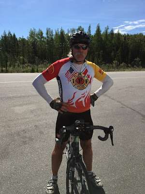 Shortly after leaving this checkpoint we passed a guy "walking" from the East Coast to the West Coast pushing a 3 wheeled cart with his supplies. He is averaging 58 km per day. We didn't meet him, but Ritchie did. I checked out his blog site. He is a real interesting dude. He is out to inspire other people. His name is Dave Gutscher and is a 20 year veteran of the military, retiring as a Major! Click here for his interesting and inspiring blog, The Wandering Canuck